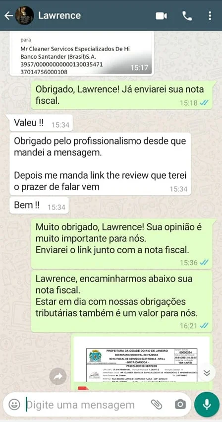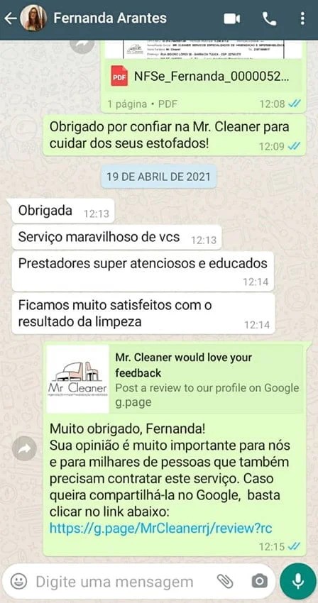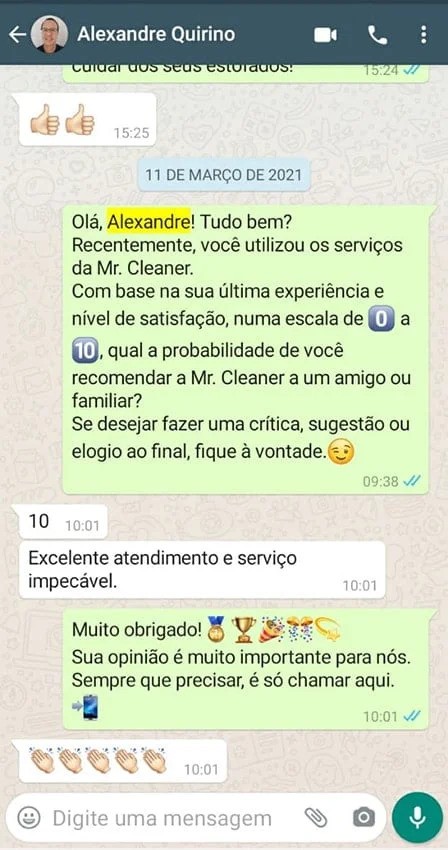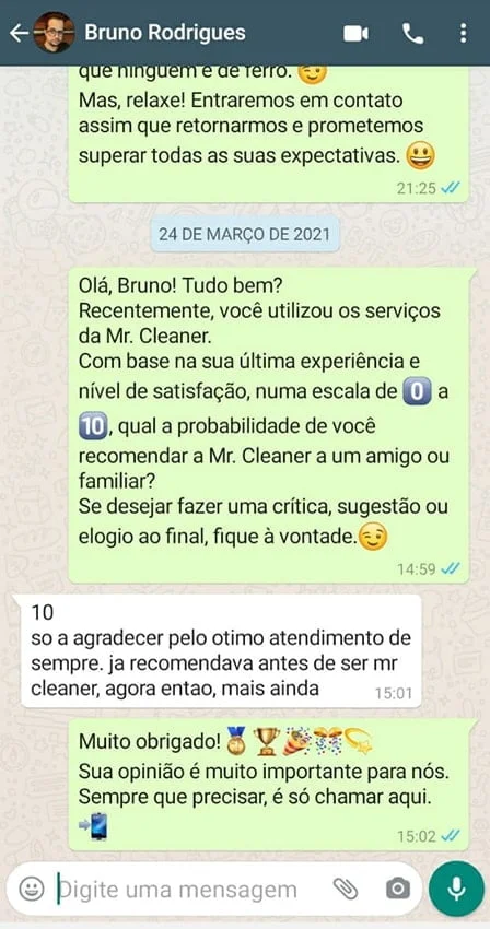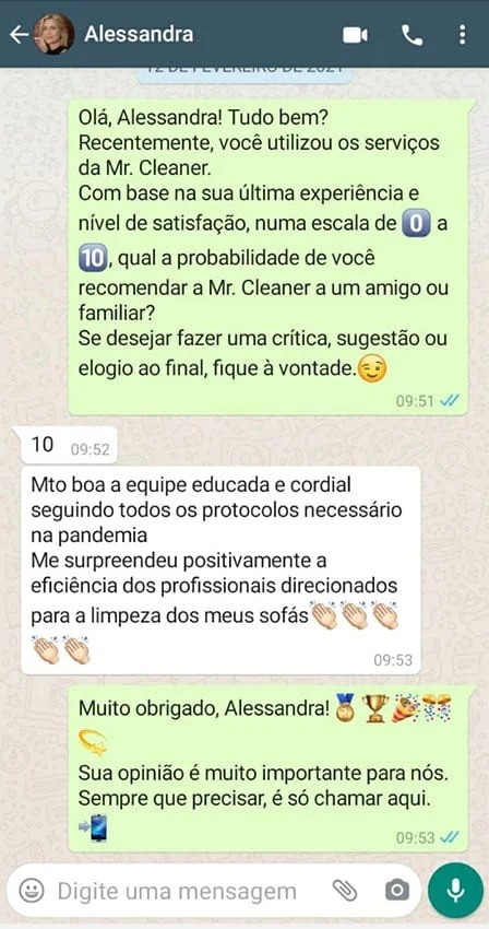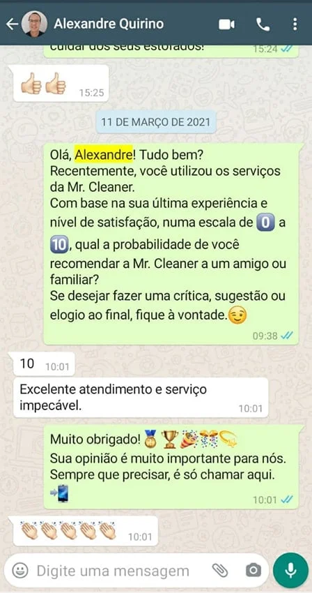 99,8% dos nossos clientes dizem estar satisfeitos com nossos serviços e recomendam a Mr. Cleaner.