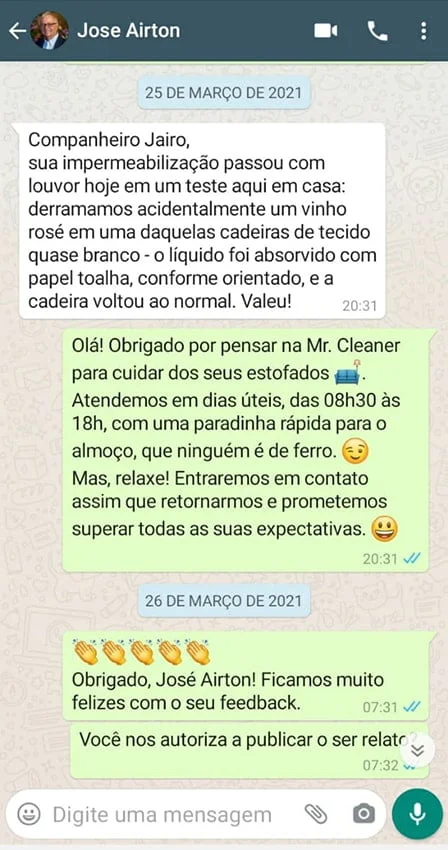 Há mais de 20 anos, a Mr. Cleaner transforma ambientes com serviços de limpeza, impermeabilização de estofados e lavagem de tapetes.